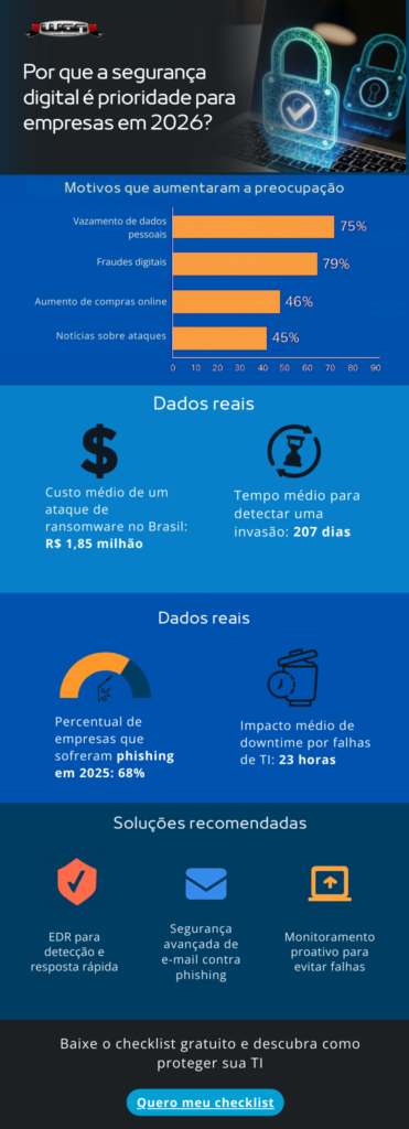 Neste artigo, você vai entender por que a segurança digital é uma prioridade para 2026 — e o que fazer para fortalecer sua empresa agora.
